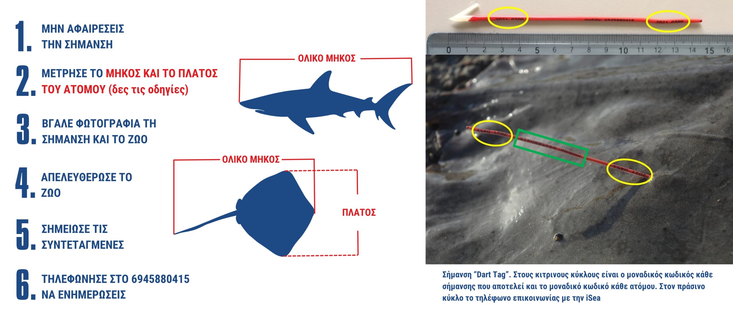 Η συνεργασία με την τοπική αλιευτική κοινότητα είναι ζωτικής σημασίας, καθώς αποτελεί τον μοναδικό τρόπο ανάκτησης των σημάνσεων. Σε περίπτωση που κάποιος εντοπίσει μια σήμανση σε καρχαρία ή σαλάχι, παρακάτω θα βρει τις απαραίτητες οδηγίες που πρέπει να ακολουθήσει.