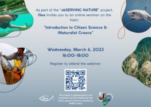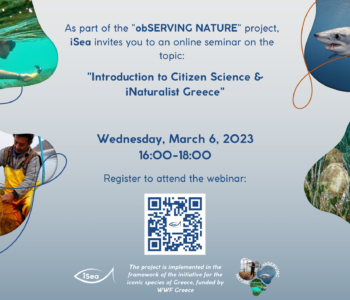 In the context of obSERVING NATURE prοject, iSea invites you to the webinar on: “Introduction to Citizen Science & iNaturalistGR“. Read more “Invitation to webinar “Introduction to Citizen Science & iNaturalist Greece””