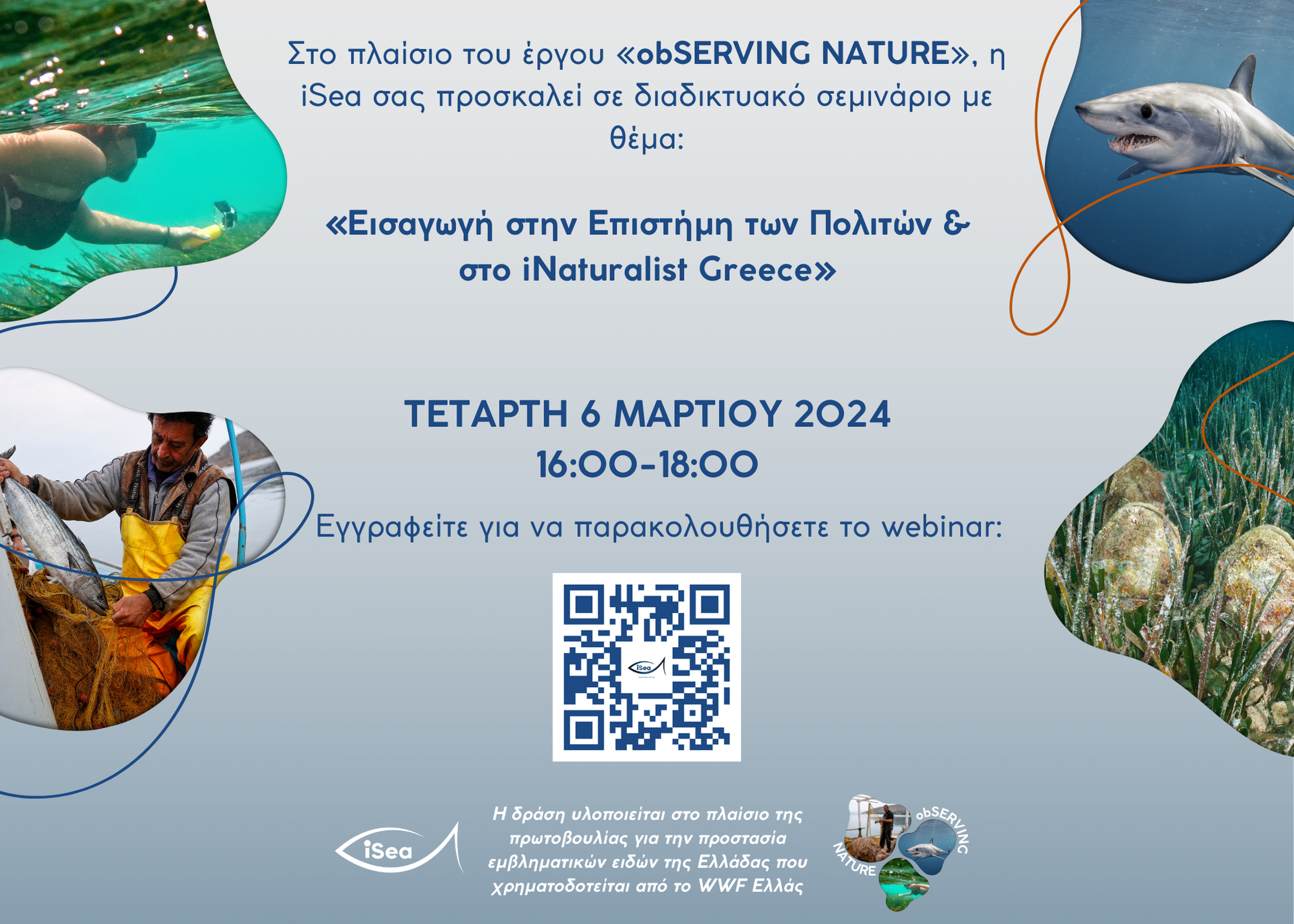 Στο πλαίσιο του προγράμματος obSERVING NATURE, η iSea σας προσκαλεί στο διαδικτυακό σεμινάριο με θέμα: «Εισαγωγή στην Επιστήμη των Πολιτών & στο iNaturalist GR». Read more