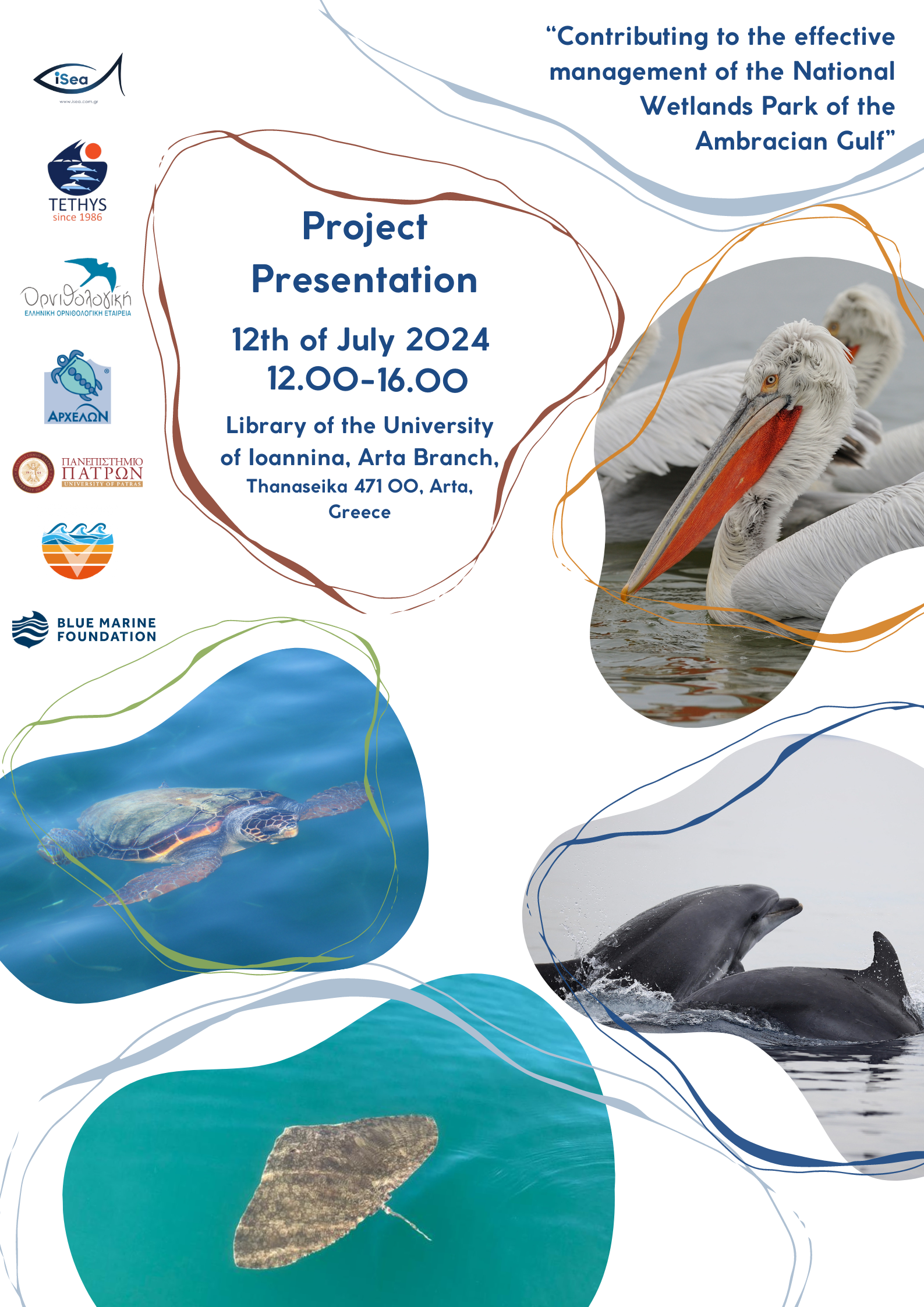Μετά τη επικύρωση της «Συμμαχίας για τον Αμβρακικό», η Περιβαλλοντική Οργάνωση  iSea, το Tethys Research Institute, ο ΑΡΧΕΛΩΝ, η Ελληνική Ορνιθολογική Εταιρεία, το Τμήμα Γεωλογίας και το Τμήμα Αλιείας και Υδατοκαλλιεργειών του Πανεπιστημίου Πατρών, μαζί με το Blue Marine Foundation, σας προσκαλούν στην εκδήλωση που διοργανώνουν με στόχο την παρουσίαση της συλλογικής τους προσπάθειας και των επόμενων βημάτων τους στην περιοχή του Αμβρακικού Κόλπου.