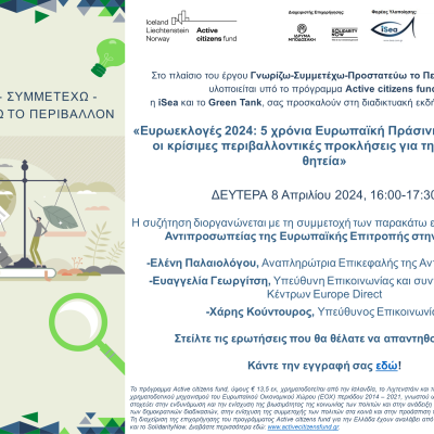 Πρόσκληση σε webinar- “Ευρωεκλογές 2024: 5 χρόνια Ευρωπαϊκή Πράσινη Συμφωνία & οι κρίσιμες περιβαλλοντικές προκλήσεις για την επόμενη θητεία”