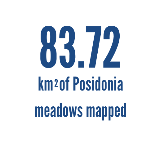 The rich local biodiversity of the area was also documented and comprised of several fish species, marine phanerogams (other than Posidonia), sea algae, sponges, echinoderms, molluscs, marine mammals, and seabirds. In total, 59 marine organisms were recorded, belonging to 13 different taxa. For the health assessment of the meadow, non-invasive techniques were used. P. oceanica leaves of 1.2m were observed in depth ranging between 4-15m. The overall sight of the meadow exhibits between a “moderate status” and a “good status” based on the quadrat survey which resulted in a variation of shoot density from 170-595. The total blue carbon sequestered in the P. oceanica meadow mapped in Northeastern Lemnos was estimated at 274,891.81 MgC for the total area and 32.83 Mgc/ha.
