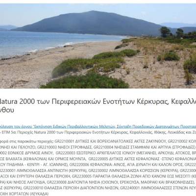 Participation in the public consultation for the Special Environmental Study concerning the Natura 2000 Areas of the Regional Units of Corfu, Kefalonia, Ithaca, Lefkada and Zakynthos.