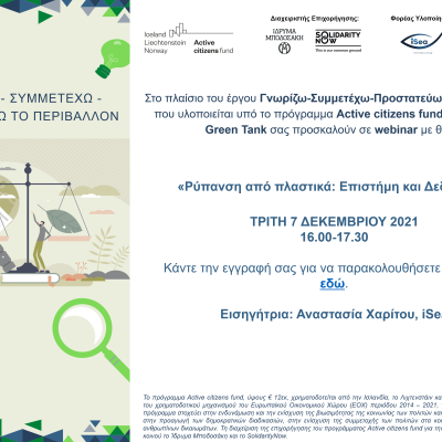 /in NewsAs part of the “Know-Participate-Protect the Environment” project, iSea and The Green Tank invite you to a webinar on “Platic pollution: Science and Data” aimed at informing participants about the latest data regarding marine pollution from plastic litter.